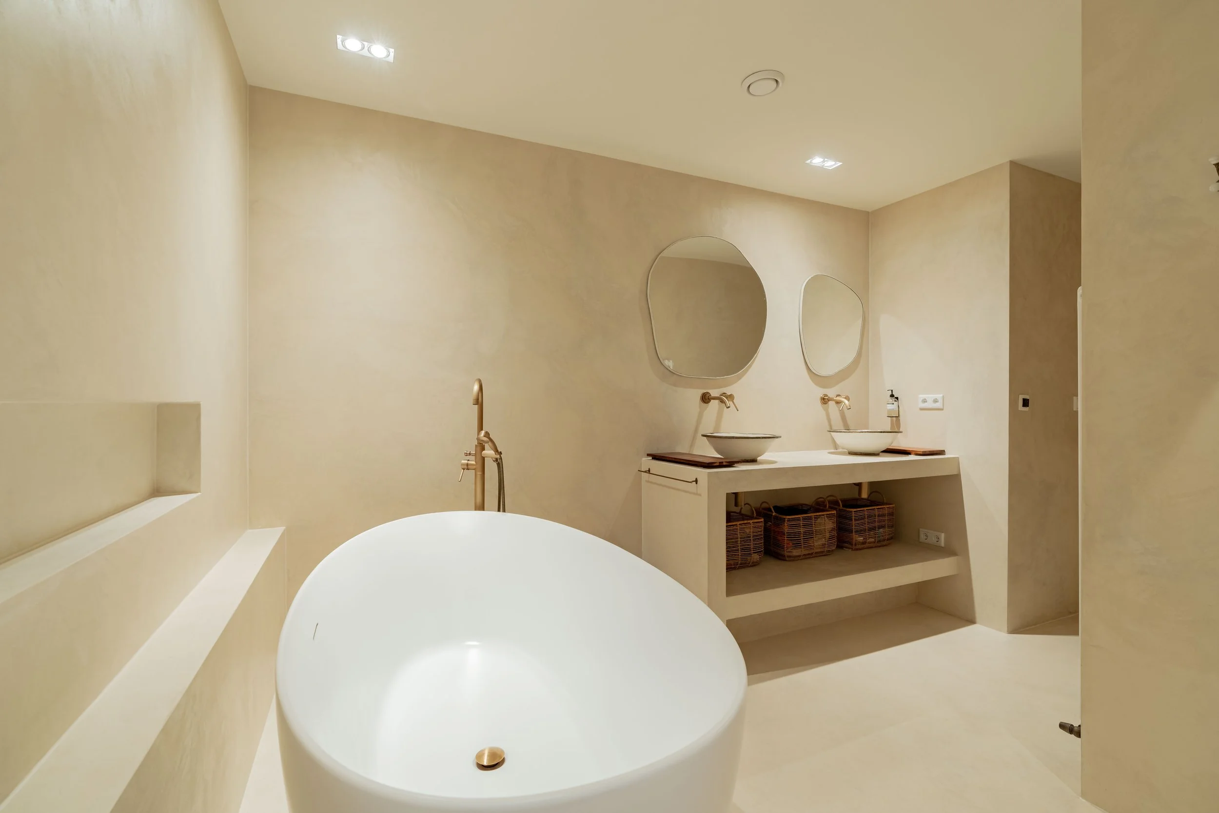 Geef de badkamer een frisse touch! Verwijder tandenborstels, make-up en flesjes, inclusief alles op de grond zoals prullenbakken, weegschalen, schoonmaakspullen en matjes. Maak elk oppervlak grondig schoon, van de douche tot het bad, de wastafel en de spiegels. Let op vingerafdrukken, watervlekken en kalk; ruim ze meteen op. Hang schone, netjes gevouwen handdoeken op en overweeg een bijpassende handdoekenset voor een vleugje luxe. Houd de badkamerdecoratie simpel en opgeruimd, voeg eventueel een potplant of een geurkaars toe voor die heerlijke spa-achtige sfeer.