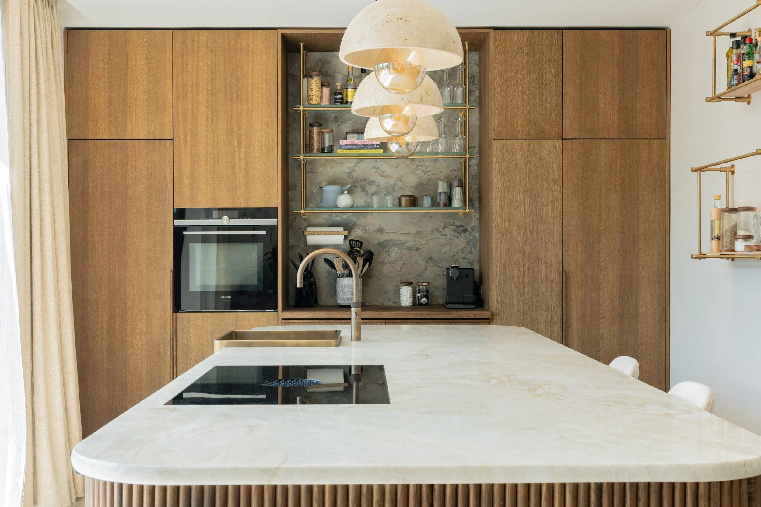 Overweeg om onnodige keukenapparatuur zoals broodroosters, blenders of koffiezetapparaten weg te bergen om de werkbladen opgeruimd te houden en een ruimtelijker gevoel te creëren. Als je beschikt over een apparaat met een prachtig design, aarzel dan niet om het te laten staan, vooral als het goed aansluit bij de rest van het interieur.